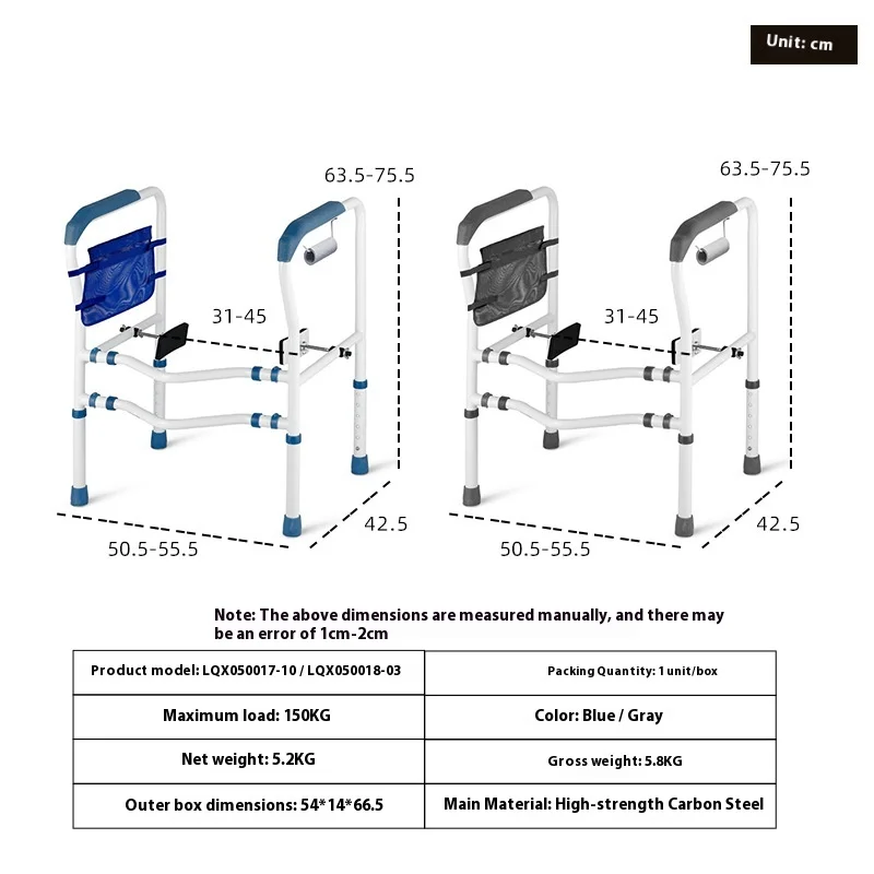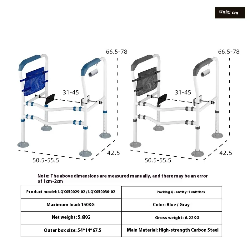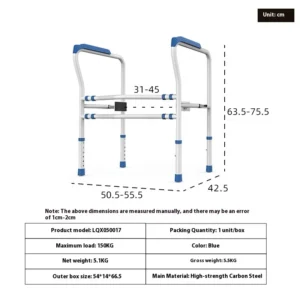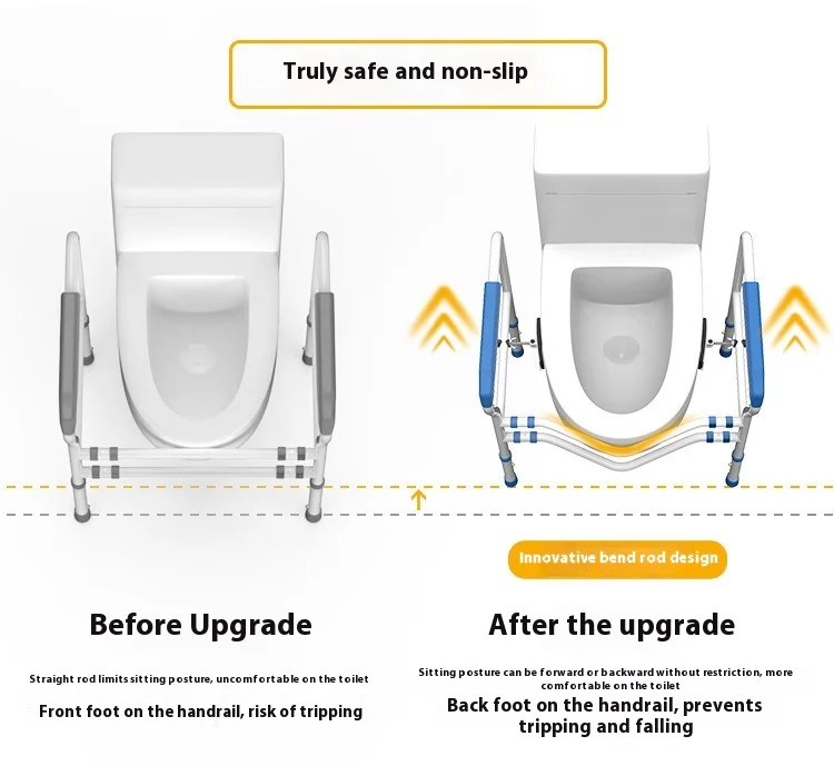 Elderly Mobility Aids Falling Height and Width Bathroom Toilet Safety Rail Tool-free Toilets Rails Rehabilitation Therapy Supply